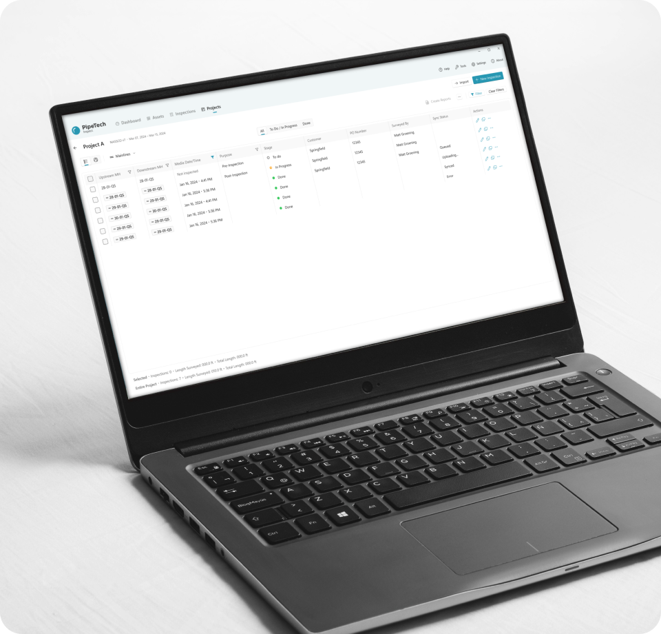 Whether inspections are performed by your internal crews or outside contractors, PipeTech connects planning, field work, and system integration into one standarized workflow.